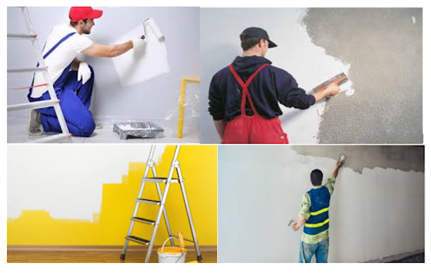 - Dùng bay thép hoặc dao trét để trét bột dẻo lên tường.